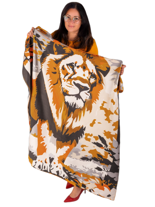 Listopad je měsícem, kdy slavím narozeniny. Vždy pro mě představoval čas zastavení, rekapitulace, hledání vlastního místa a rovnováhy. Podzimní království vzniklo jako obraz tohoto období. Chvíle, kdy se člověk obrací do sebe, hledá svou vnitřní sílu a připomíná si, že i uprostřed pádu listů může stát vzpřímeně a hrdě. A motiv Lva? Lev pro mě není jen král zvířat. Je symbolem odvahy, sebevědomí a důstojnosti, která není hlučná, ale vyzařuje tichou přítomnost. Když jsem navrhovala tento šátek, představovala jsem si, jak stojí uprostřed lesa v plném podzimním hávu. Stromy kolem něj odhazují listy, a přesto on zůstává pevný, vznešený, s pohledem upřeným vpřed. Teplé odstíny oranžové a zlaté v sobě nesou optimismus, světlo a radost, zatímco hnědá přináší stabilitu a uzemnění. Dohromady tvoří harmonii, která je stejně proměnlivá jako život. A právě v té proměnlivosti jsem objevila inspiraci, protože i v čase změn může být síla a krása. „Podzimní království“ je pro mě symbolem zralosti, odvahy a schopnosti najít klid v přechodech. Je to připomínka, že každá žena v sobě nese sílu lvice, i když ji někdy obaluje jemnost podzimního listí. |