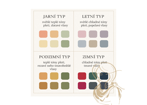 - Teplý tón pleti si rozumí se zlatou, karamelovou, hnědou nebo korálovou, které přinášejí do vzhledu teplo a světlo.