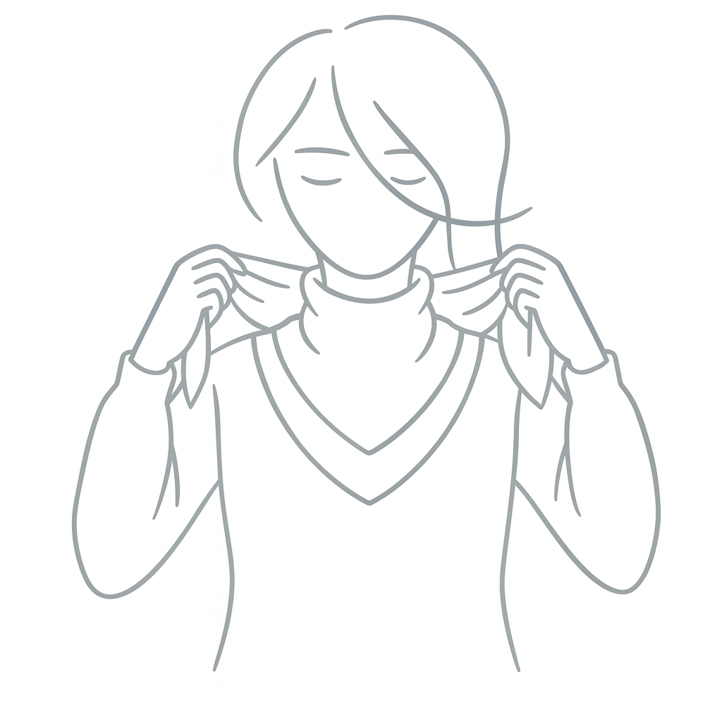 Nejprve šátek rozložte na rovnou plochu a přeložte ho do tvaru trojúhelníku. Poté si ho položte kolem krku tak, aby špička trojúhelníku směřovala dopředu na hruď, a oba cípy volně splývaly podél ramen. Můžete je zarovnat pro uhlazenější vzhled, nebo je nechat ležérně posunuté, pokud chcete docílit uvolněnějšího dojmu. |