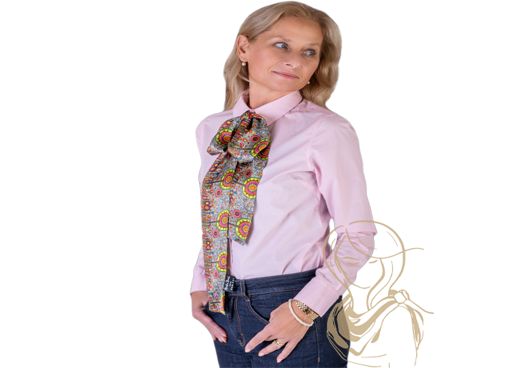 Šál Boho výšivkový sen: Uvázaný kolem krku do elegantního uzlu promění tento outfit v sofistikovaný look s originálním prvkem. Výrazný vzor inspirovaný výšivkami dodává košilovým šatům živost a boho nádech, zatímco saténový lesk působí luxusně a reprezentativně. Skvělá volba do kanceláře, na obchodní schůzky i společenské příležitosti, kdy chcete působit profesionálně, ale zároveň originálně. |