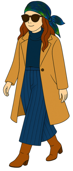 | 2. Podzimní městský look | Styl: trendy a uvolněná elegance pro chladnější dny, kdy se pohodlí potkává s barevným akcentem šátku. | ||