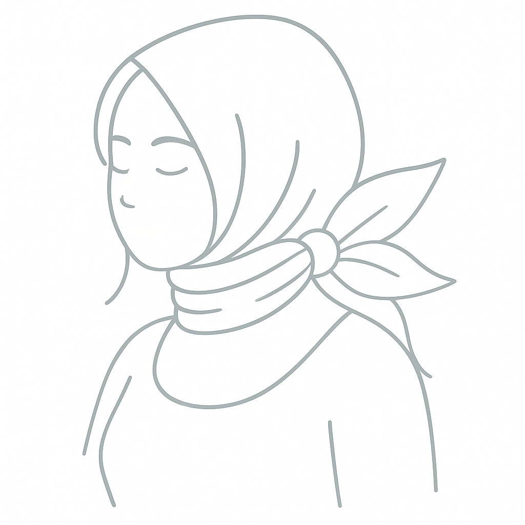 Krok 2 — Překřiž pod bradou Postranní cípy veď dopředu pod bradu, překřiž je a jemně dotáhni. Dbej, ať zůstane přední hrana hladká – účes bude chráněný a elegantní. |