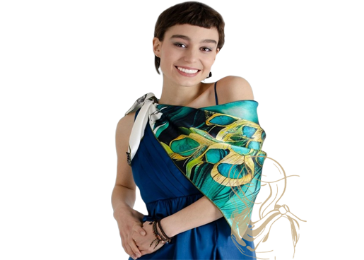 Krok 2 – Přehození přes ramena Vezměte šátek za oba konce a volně jej přehoďte přes ramena tak, aby cípy splývaly po stranách těla. Neutahujte jej. Cílem je, aby látka působila vzdušně a přirozeně. Hedvábí se samo krásně přizpůsobí vašemu pohybu a dodá celému vzhledu pocit nenucené elegance. |
