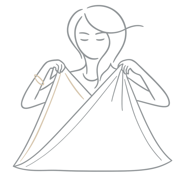 Rozložte šátek do trojúhelníku a přidržte jeho delší okraj před tělem tak, aby cípy směřovaly do stran.