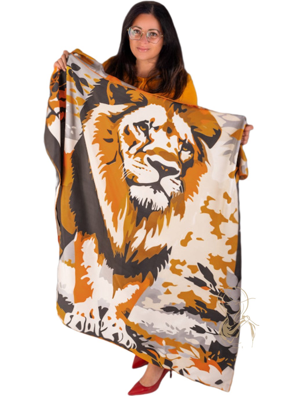 Šátek Podzimní království je oslavou síly a majestátnosti lva – krále zvířat. Lev, známý svou odvahou, ochranitelskou povahou a sílou, je v tomto designu obklopen podzimními barvami, které připomínají přechod do chladnějších dnů, ale zároveň září teplými tóny života. Lev v symbolice znamená sebevědomí, odvahu a vedení – vlastnosti, které tento šátek přenáší na každou ženu, která jej nosí.