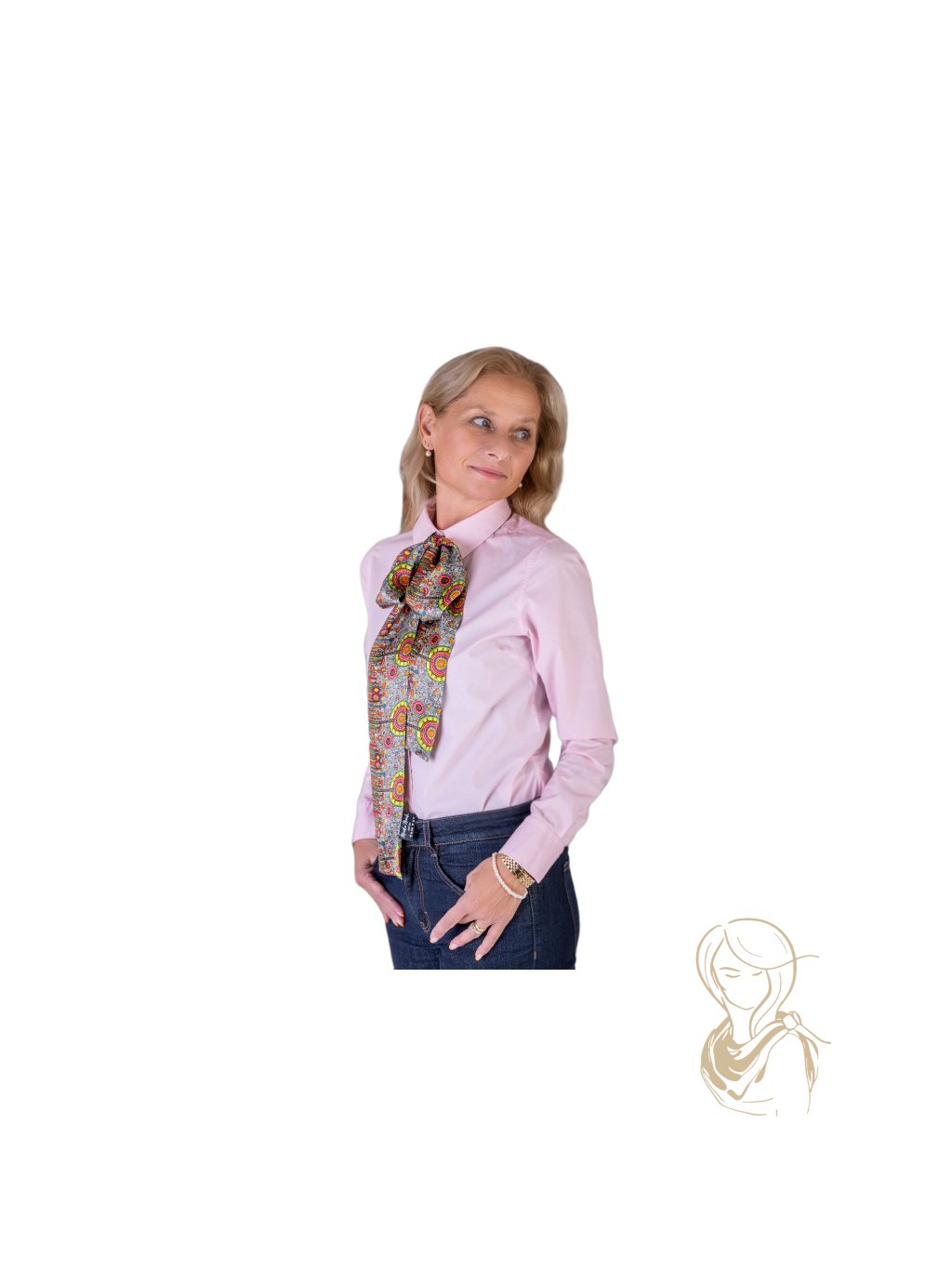 Šátek twilly výšivkový sen je jako cesta do světa tradičních výšivek, které jsou v tomto designu přetvořeny do moderní podoby. Zářivé barvy, jako jsou sytá růžová, zářivá modrá a svěží zelená, se harmonicky mísí s jemnými bílými a žlutými tóny, čímž vytvářejí optimistický a radostný vzhled. Design přináší živou energii a hravost, která je perfektní pro ženy, jež chtějí do svého outfitu přinést originalitu a výraznost. Saténový materiál dodává šátku jemný lesk a zajišťuje příjemný pocit na dotek. Tento šátek v sobě kombinuje boho styl a elegantní nádech, takže je ideální pro každodenní nošení i speciální příležitosti.